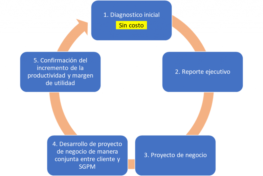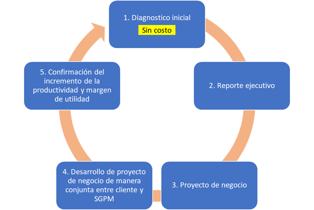 Para poder brindarle un servicio con la certeza de que es lo requerido por el cliente, nuestros profesionales realizan un diagnóstico inicial realizando una visita a las operaciones productivas del cliente plasmando los resultado en un reporte ejecutivo, que podrá ser presentado a la alta dirección, mostrando desperdicios identificados, su impacto en la productividad y utilidad, herramientas Lean Manufacturing aplicables para su eliminación o reducción y beneficios esperados